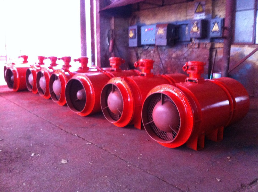 该通风机具有结构紧凑、效率高、噪音低、逆风性能好、送风距离远等优点,特别是噪音低,可改善工人的劳动环境,符合国家的环保要求,是煤矿井下局部通风的理想设备。其结构特征为隔爆型、消音、轴流式,防爆标志ExdI。