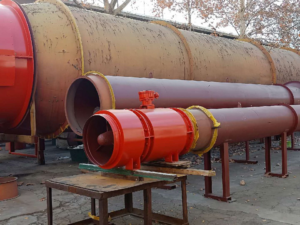 该通风机具有结构紧凑、效率高、噪音低、逆风性能好、送风距离远等优点,特别是噪音低,可改善工人的劳动环境,符合国家的环保要求,是煤矿井下局部通风的理想设备。其结构特征为隔爆型、消音、轴流式,防爆标志ExdI。
