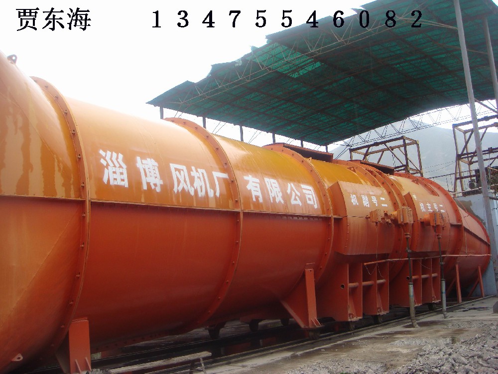 煤矿风机全部叶片可调整,共分为45º、40º、35º、30º和25º五个工作角度,前后级安装角度可以一致,也可以不同,又可调节为45º以下的任意角度运行。可以单独运行其中的一台风机,因此,可调范围极其宽广。在矿井投产初期可只运行其中的一级风机。